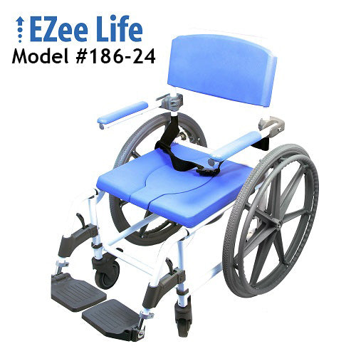 Model #186 – Aluminum attendant shower and commode chair model# 186 is a hybrid wide 22″ commode and a transport chair in one. The chair comes with four 5″ locking casters to provide safety when the user does not need to be moved. The seat cut-out provides comfort and allows the chair to be positioned over a standard toilet for use, but also comes with a bucket to be used anywhere it is required. The aluminum frame of the Shower Commode Chair is an attractive white color and is also resistant to rust which makes it ideal for the shower. Footrests come standard and include adjustable height and angle footplates. The Aluminum Shower Commode Chair is ideal for anyone who is looking for a shower chair and commode for their home.