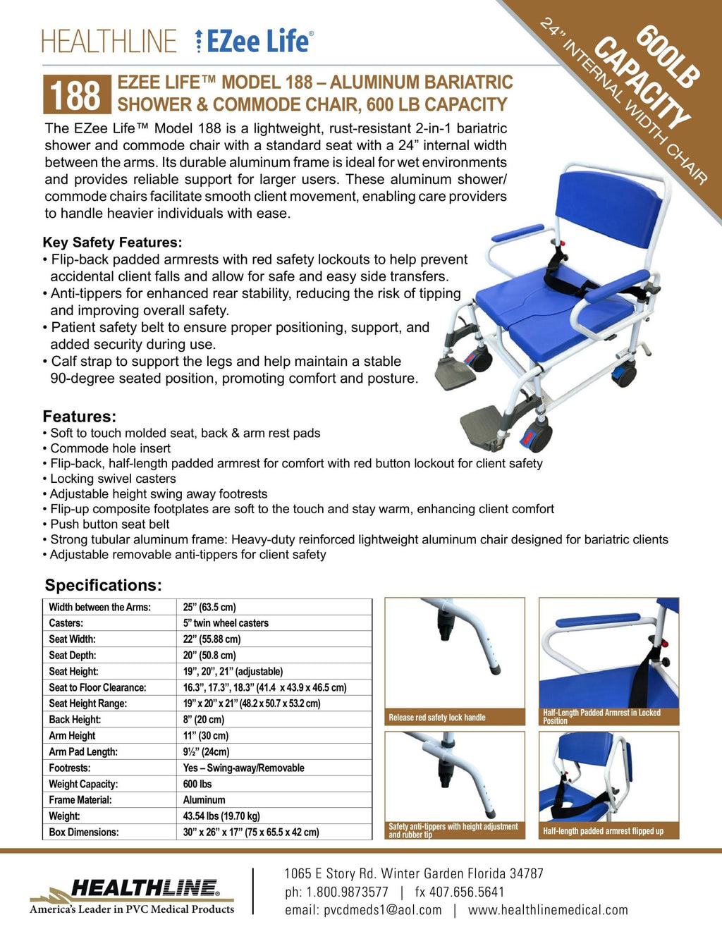 Healthline Model #188 Aluminum Shower Commode 24″ seat