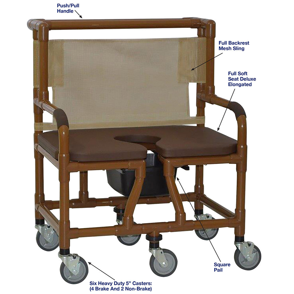 MJM International Wide Shower Chair With Deluxe Elongated Soft Seat And Square Pail