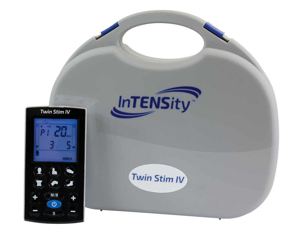 The InTENSity Twin Stim IV is the newest standard in portable, multifunction electrotherapy offering patients two modalities in one user-friendly, ergonomic design - Transcutaneous Electrical Nerve Stimulation (TENS) and Neuromuscular Electrical Stimulation (NMES).