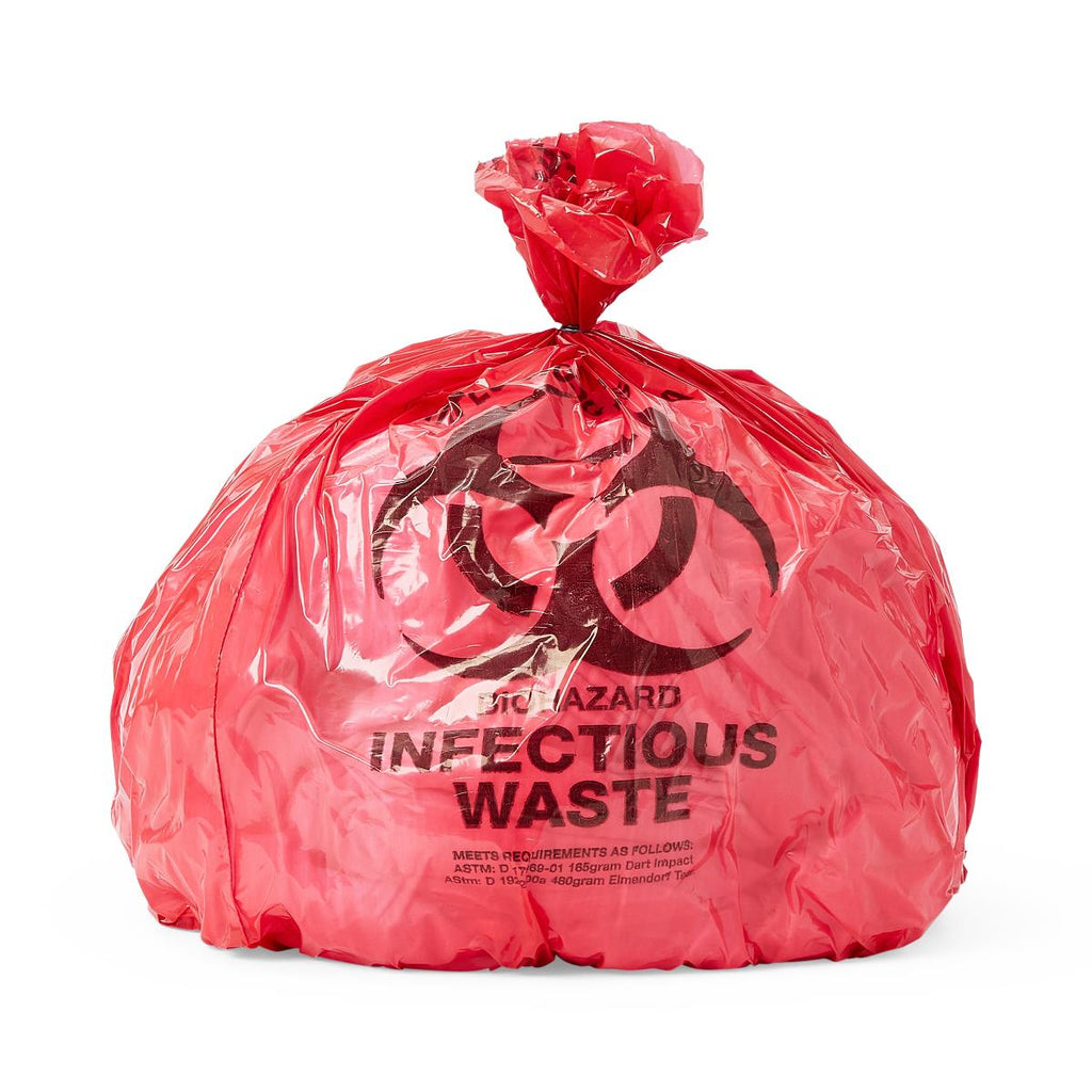 - Description: LINER, RED, 24"X24", 10 GALLON, 1.2 MIL, FLAT PACK, 500 EA/CS. "INFECTIOUS WASTE" PRINT AND BIOHAZARD SYMBOL. MEETS 165 GM DART DROP TEST AND 480 TEAR TEST. MEETS STANDARD REGULATIONS IN ALL 50 STATES. PASSES PENNSYLVANIA, CALIFORNIA AND FLORIDA STATE REGULATIONS.