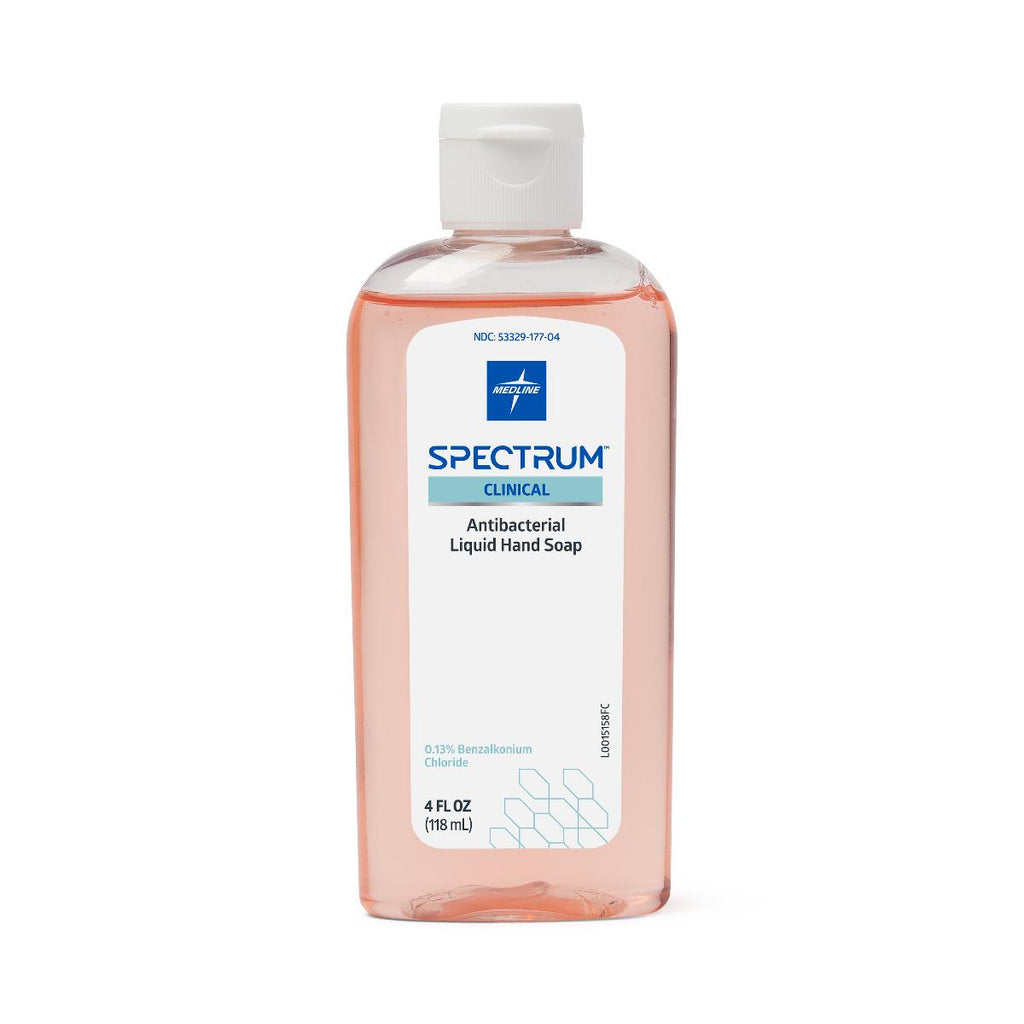 Spectrum Clinical Antibacterial Liquid Hand Soap with 0.13% BZK, Clean Scent, 4-oz. Personal Carry Bottle