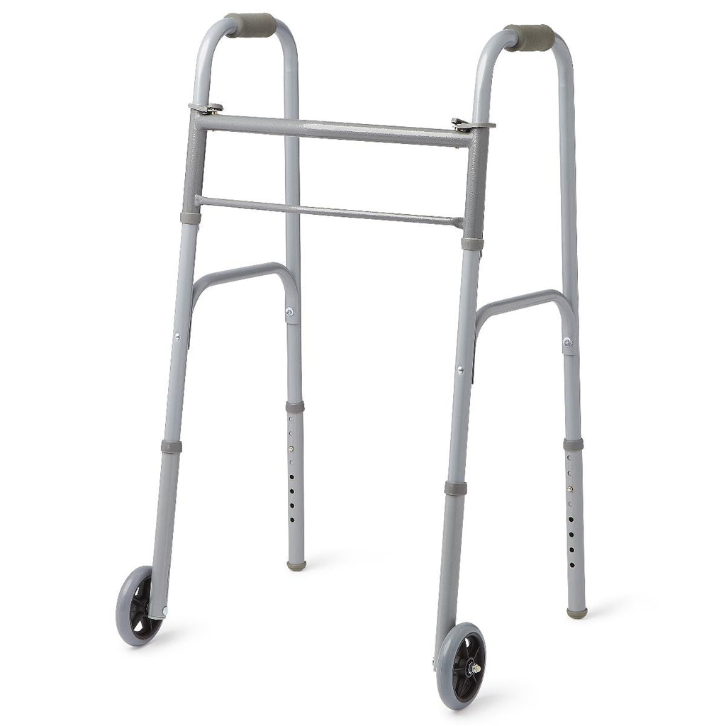 Medline Two-Button Folding Walker with Front Wheels