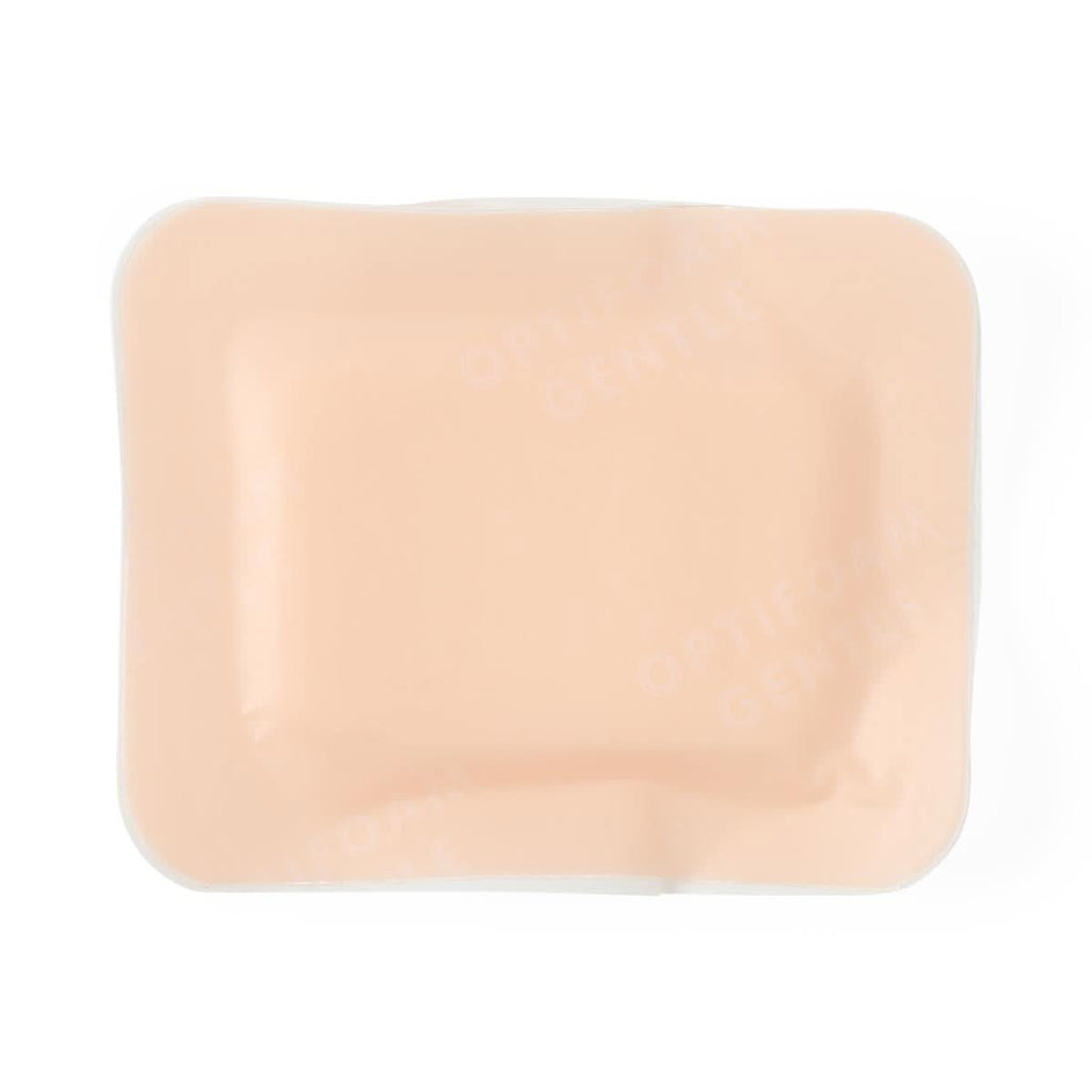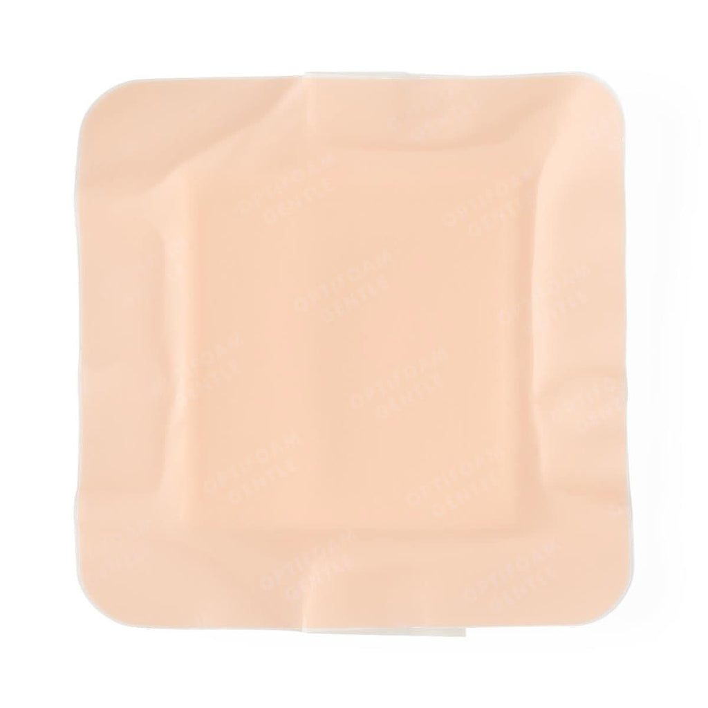 - Description: Optifoam Gentle: Optifoam Gentle is ideal for wounds with drainage. Silicone adhesive aids in pain-free removal. Also has waterpoof backing. Utilizes silicone adhesive for gentle adhesion. Minimizes damage to fragile skin. Needs no additional fixation. Indications/Uses: absorbs drainage; partial and shallow, full-thickness wounds. Can remain in place up to 7 days depending on the amount of drainage. 6" x 6" (15.2 cm x 15.2 cm).