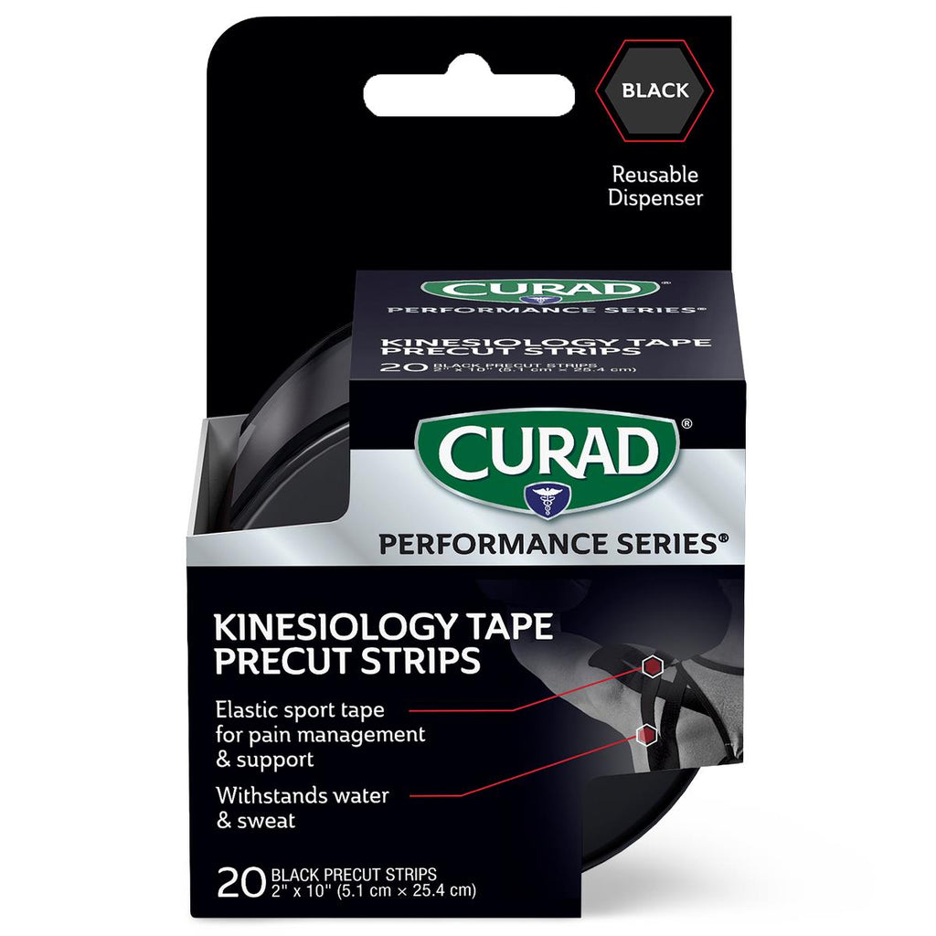 CURAD Performance Series Kinesiology Tape, Black, 2" x 10"