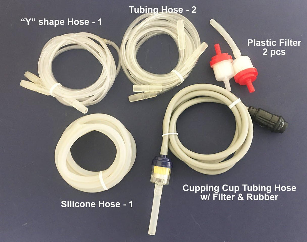 • Double Filter System / Available for “Suction Therapy” or “Massage Therapy” both. / 4 type of Hose Include 1 of 60" Tubing Hose w/ Filter & Rubber, 2 of Straight Tubing Hose, 1 of “Y” Tubing Hose, 1 of Silicone Hose