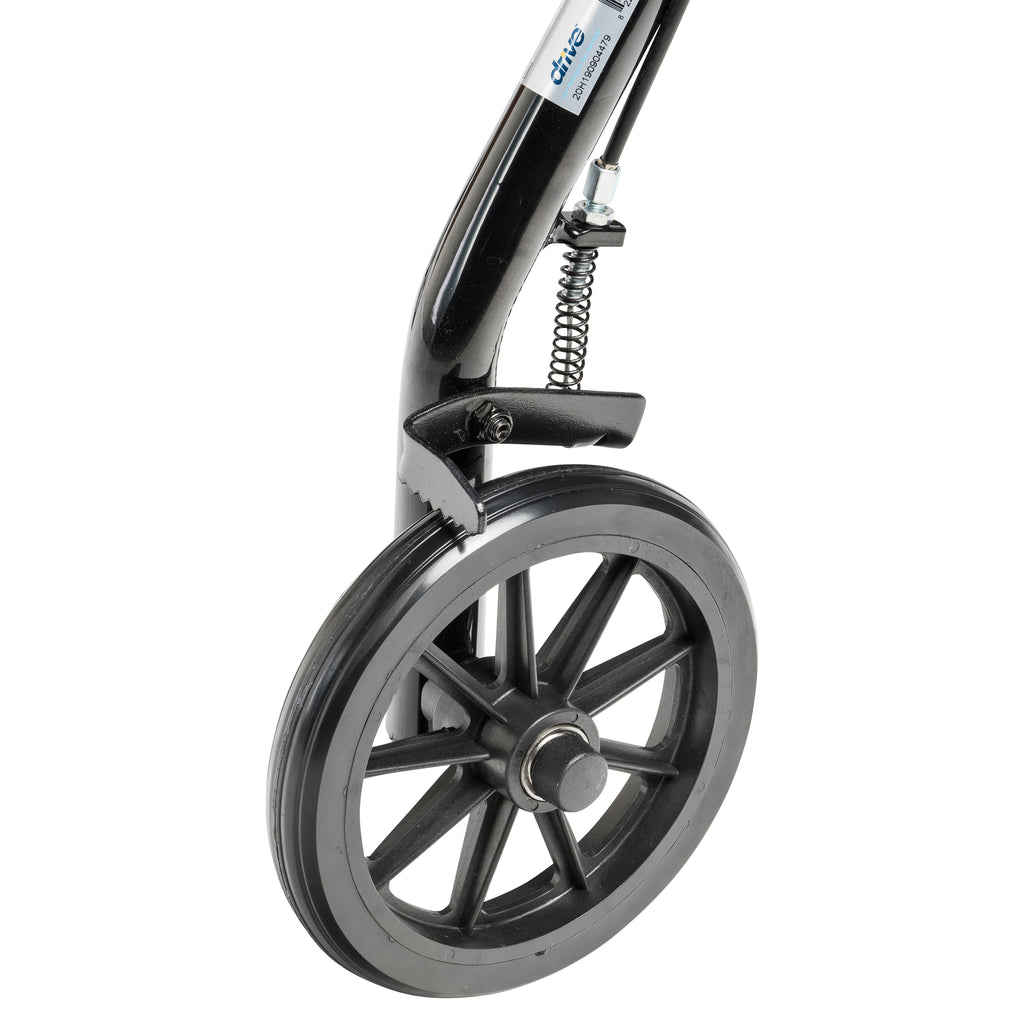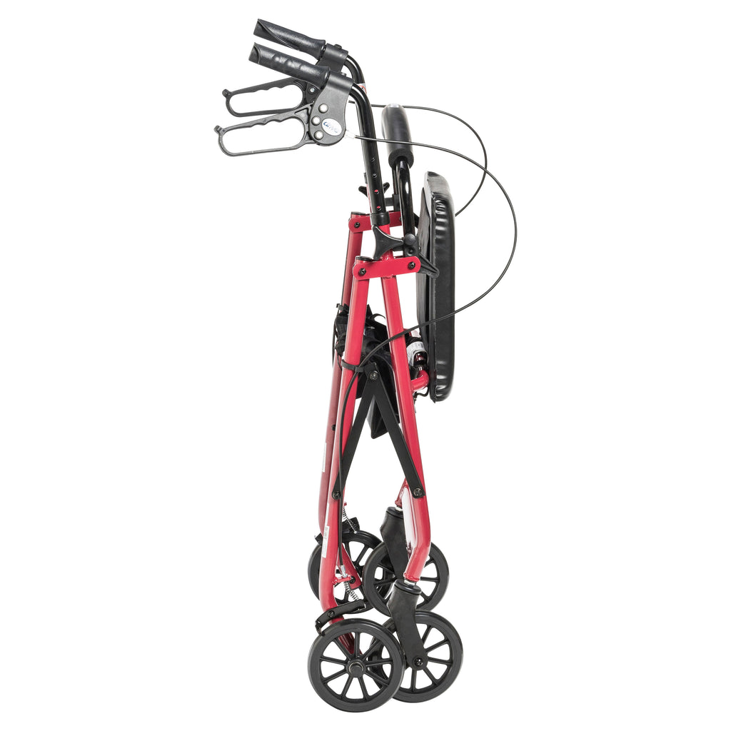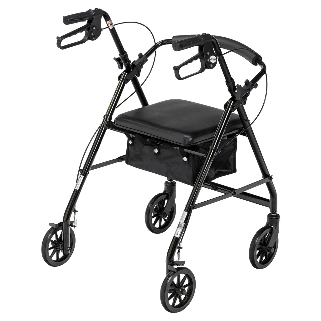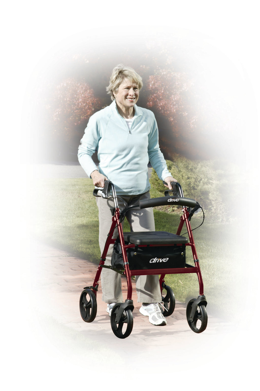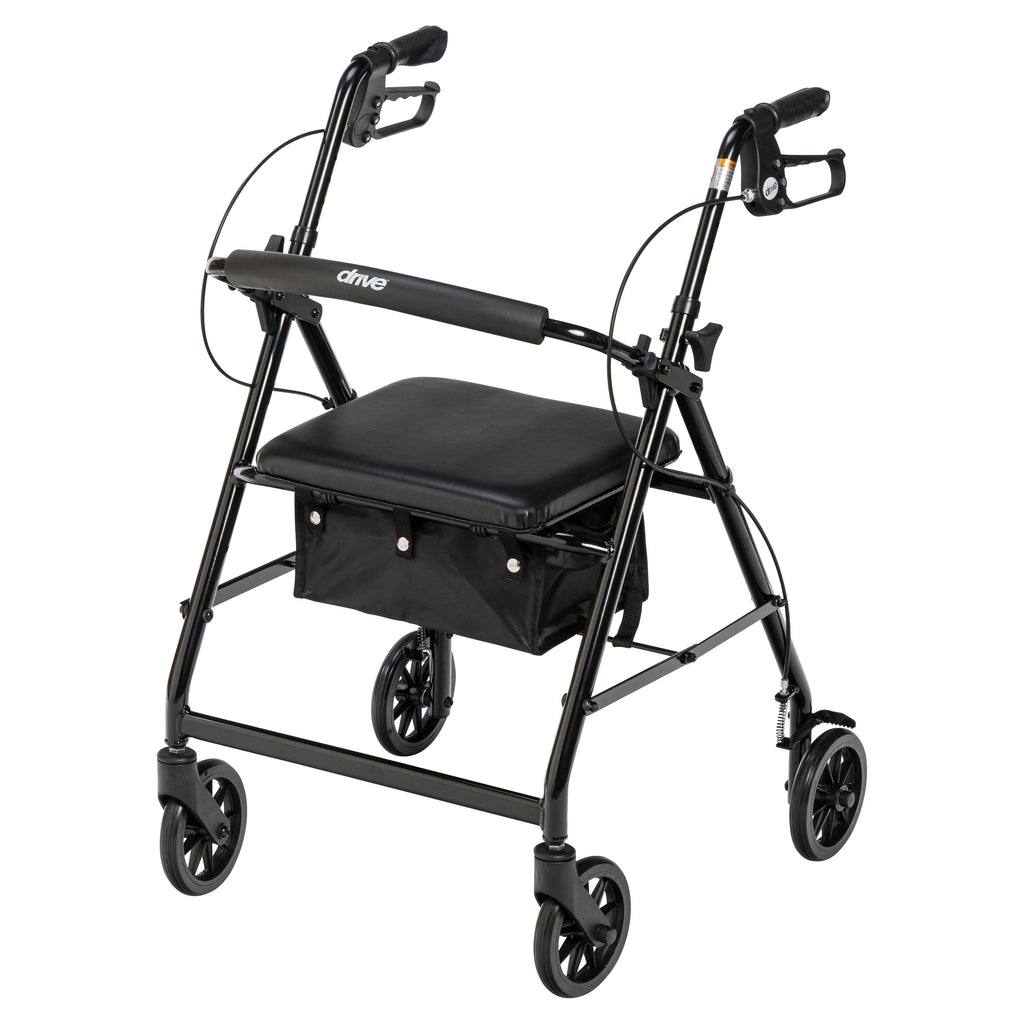 The Walker Rollator with 6" Wheels, Fold Up Removable Back Support and Padded Seat by Drive Medical comes standard with 6" caster wheels, loop locks and serrated brakes to ensure safety. The seamless padded seat opens to a roomy, convenient, zippered storage pouch to easily and securely transport personal items, and the ergonomic handles are easy to grip, relieve hand pressure, and are height adjustable to accommodate users height. This Rollator by Drive Medical is a great value that provides the freedom of mobility. With a convenient seat for resting and loop locks that keep the Rollator from moving, you can be assured that this mobility aid will provide a safe and secure way to regain your active lifestyle.
