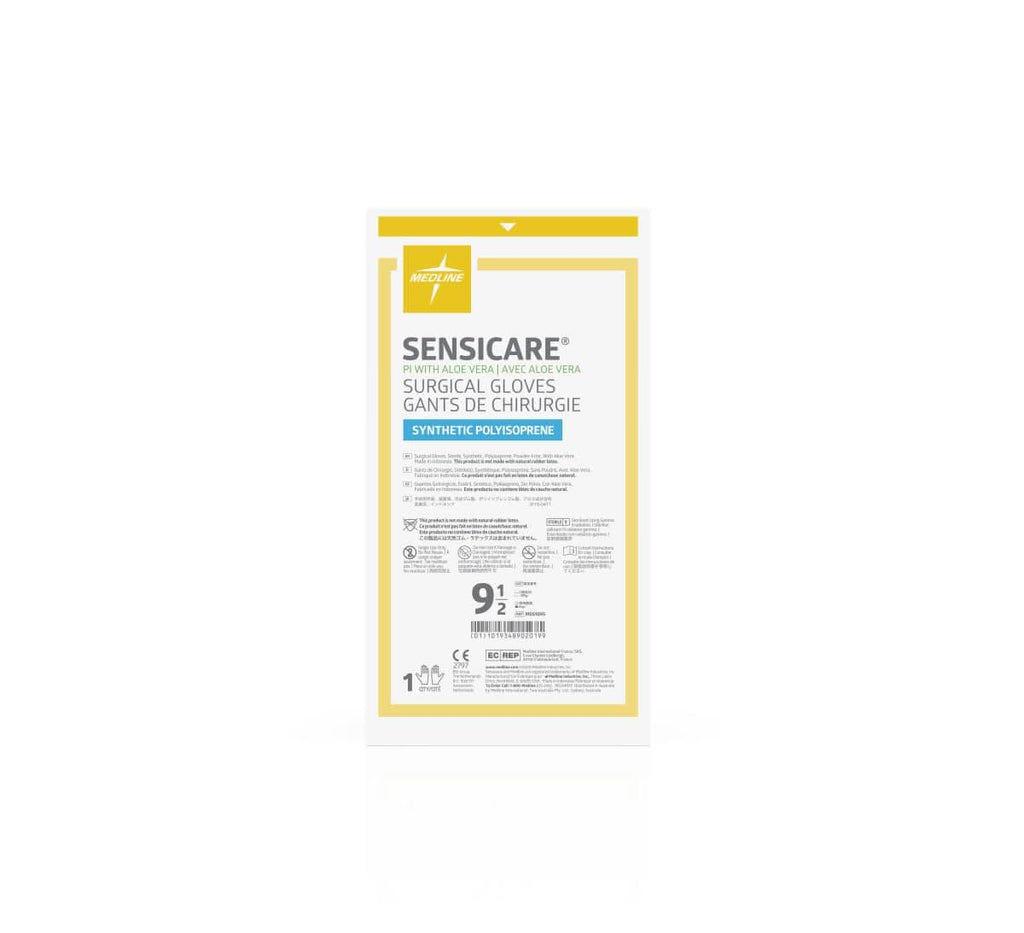 - Description: SensiCare with Aloe: SensiCare revolutionized the medical glove industry as the first Synthetic Polyisoprene surgical glove on the market. Medline is the only surgical glove manufacturer that makes its own raw material Polyisoprene, called Isolex, ensuring you a safe, quality product. SensiCare is coated with 100% pure aloe vera to help soothe and moisturize dry, irritated skin caused by frequent hand washing and glove-wearing. Glove Specifications: Material Isolex Polyisoprene, Thickness* 10 mils; Texture/Grip Smooth, Color White, Donning Agent Synthetic Polymer Coating Size 9.