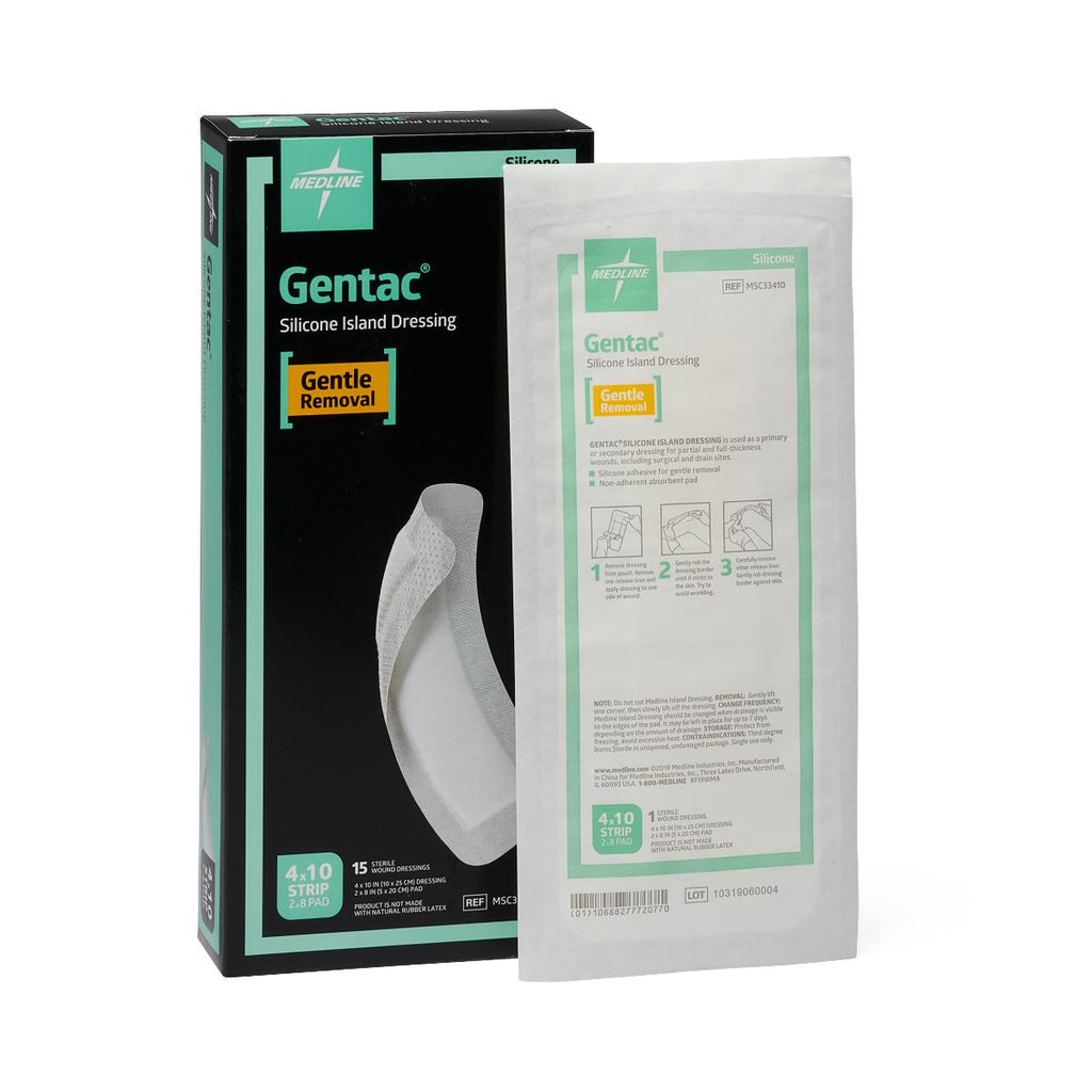 Silicone Adhesive Island Wound Dressing, 4" x 10", 2" x 8" Pad Size