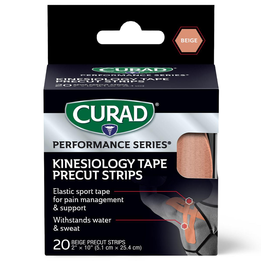 CURAD Performance Series Kinesiology Tape, Beige, 2" x 10", Without Canister