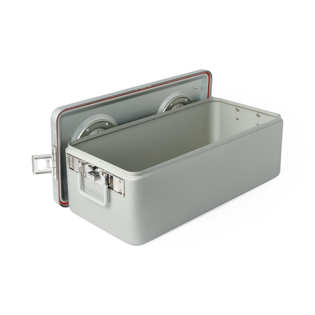 Steriset Sterilization Container, Full-Size, Flat Bottom, Aluminum Lid, Gray Handle, 23.5" x 10.8" x 8"