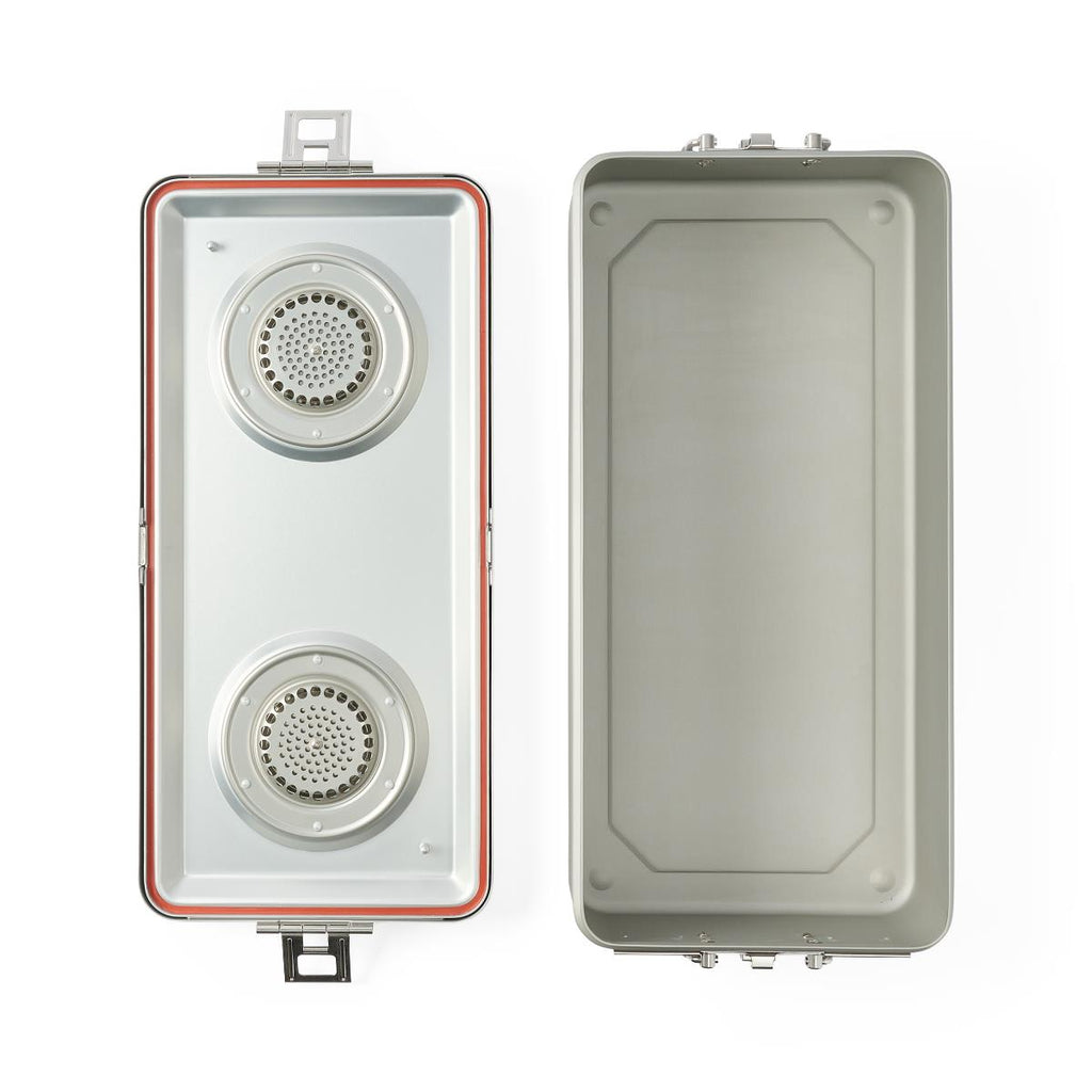 Steriset Sterilization Container, Full-Size, Flat Bottom, Aluminum Lid, Gray Handle, 23.5" x 10.8" x 5.25"