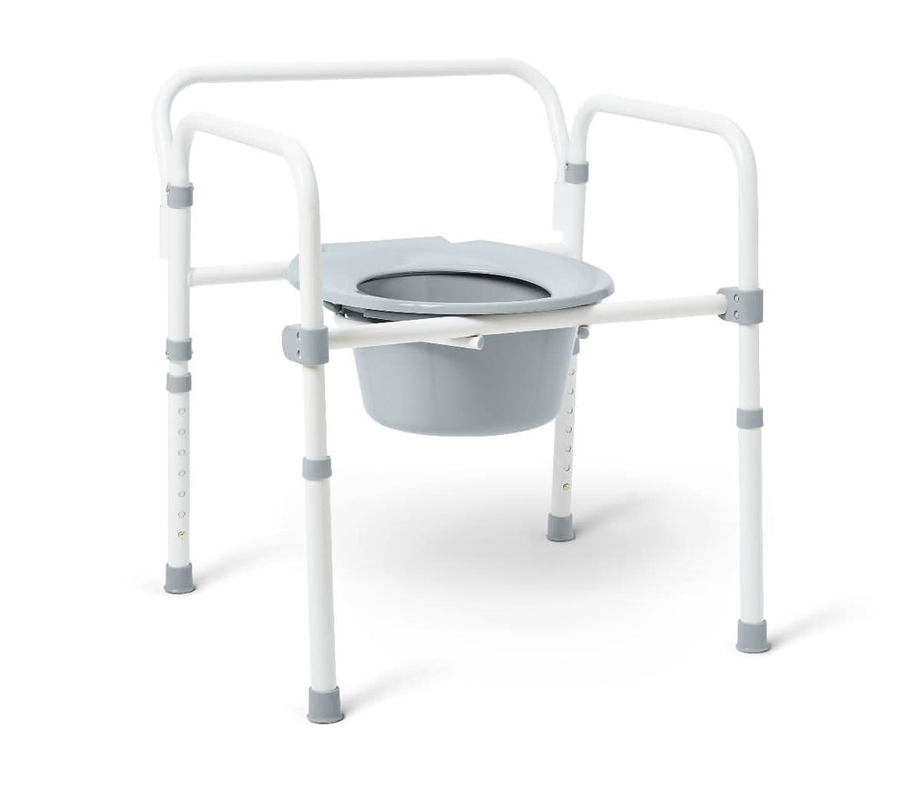 Economy Elongated Steel 3-in-1 Folding Commode, Includes Seat, Bucket, and Splashguard, No Seat Lid or Armrests