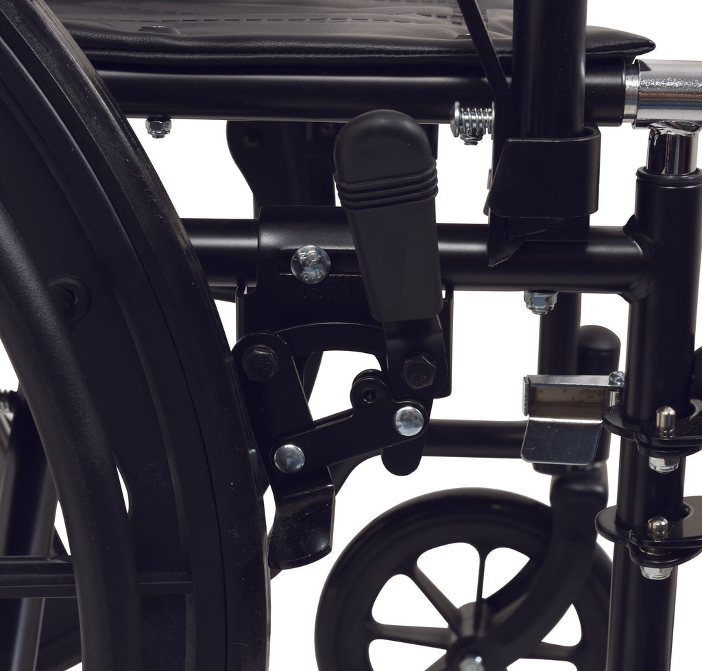 • Includes tool-free swing-away footrests with heel loops or elevating padded legrests with composite footplates