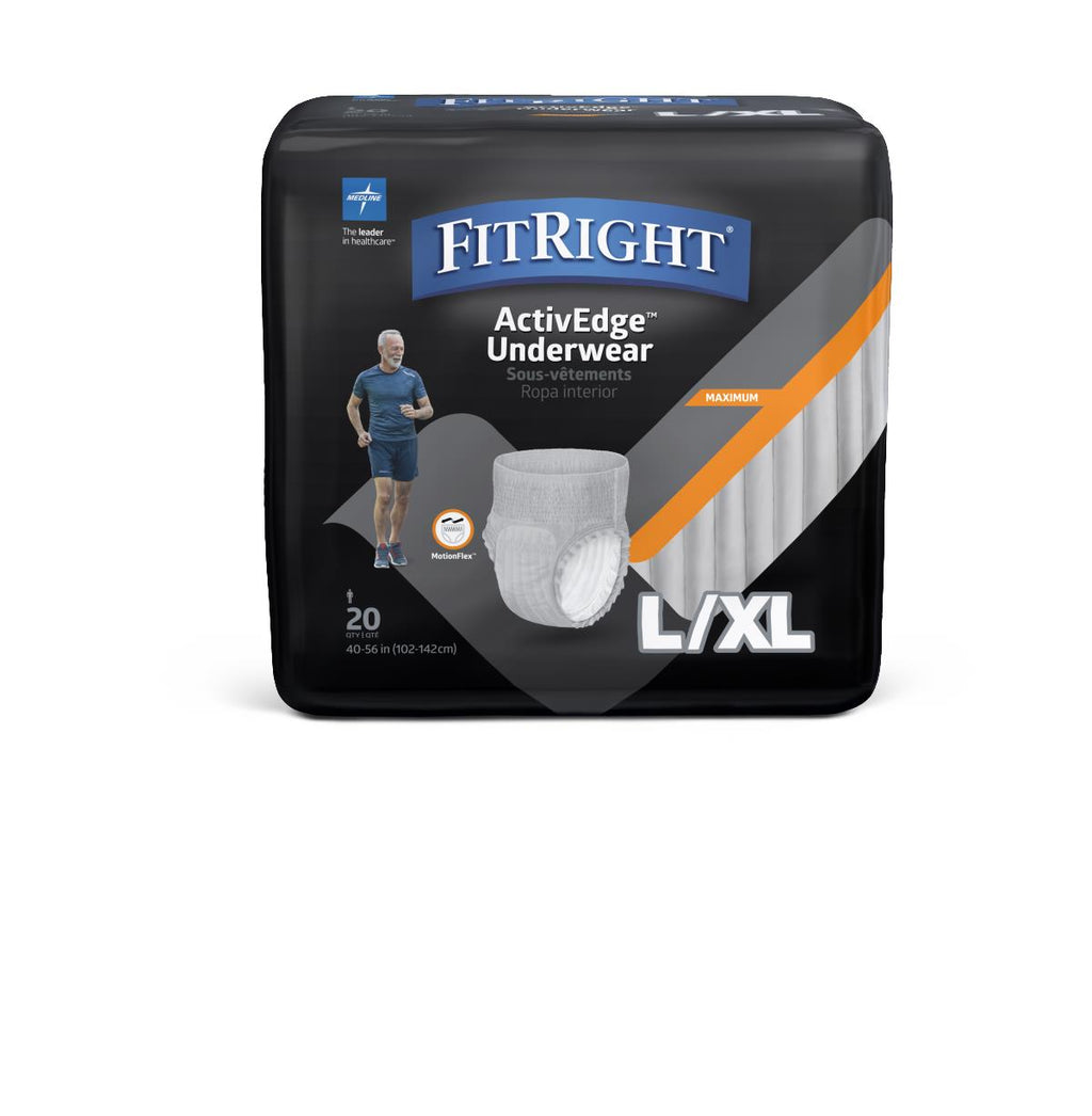 FitRight ActiveEdge Ultra Incontinence Underwear for Men, Size L/XL, For Waist Size 40"-56"