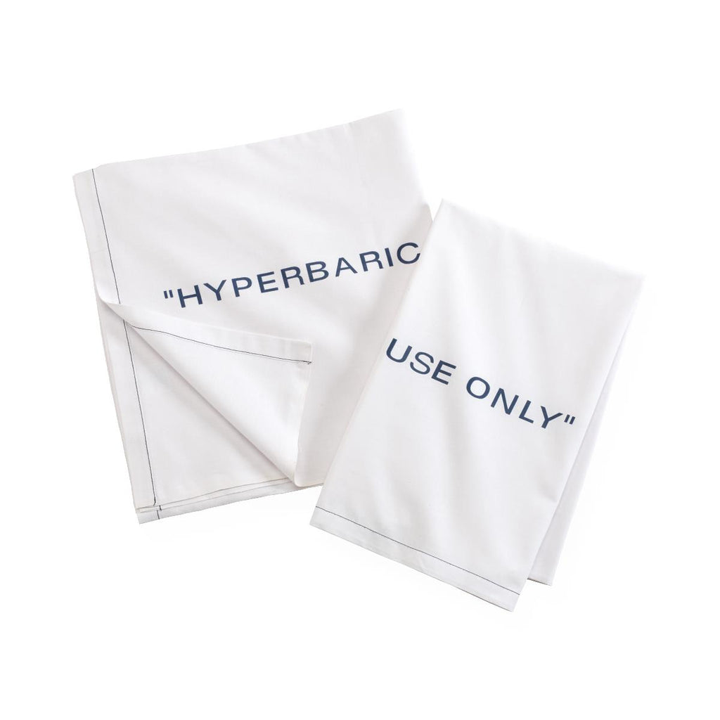 - Description: 100% Cotton Sheets and Pillowcases Are Clearly Labeled for Hyperbaric Chambers. Designed exclusively for use in hyperbaric chambers, these sheets and pillowcases provide the best in convenience and safety. The blue continuous imprint marking on both the sheets and pillowcases reads "hyperbaric use only" to help keep them separated from other linens. 100% cotton fabric and hem threads make this the only product suitable for use in hyperbaric chambers. Pillowcase, 42" x 34"