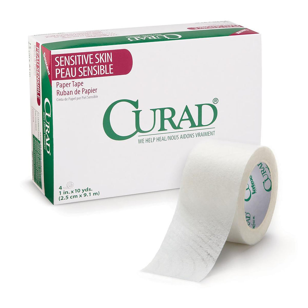 - Description: CURAD® Sensitive Skin Paper Tape: When residents or patients have delicate, fragile skin, you know the importance of using only the gentlest tape to apply dressings. CURAD Sensitive Skin Paper Tape answers this need with its innovative wavy adhesive pattern. Adhesive is present only on every alternate wave. This unique wave pattern provides plenty of surface area for the tape to stick, yet the smaller amount of adhesive is gentler to the skin when the tape comes off. The gaps in the adhesive also allow for breathability. 2" x 10 yd. 72 ea/cs.
